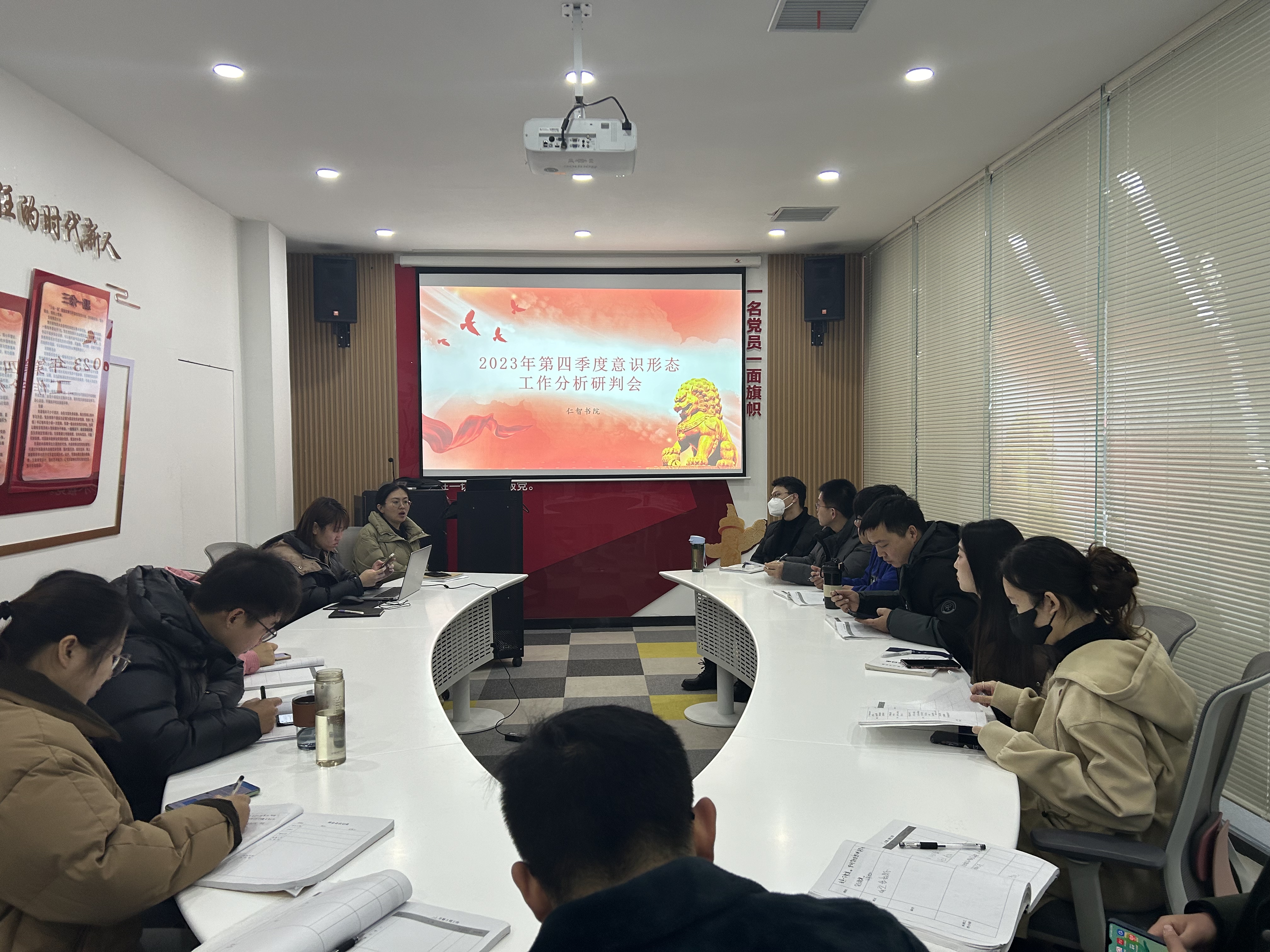 为贯彻落实中央、省委和市委关于意识形态工作的决策部署和指示精神,进一步加强和改进书院意识形态工作,仁智书院于2023年12月12日在党建服务中心召开2023年第四季度意识形态工作分析研判会。本次会议由仁智书院党总支书记马苏娟主持,全体教职工参加。