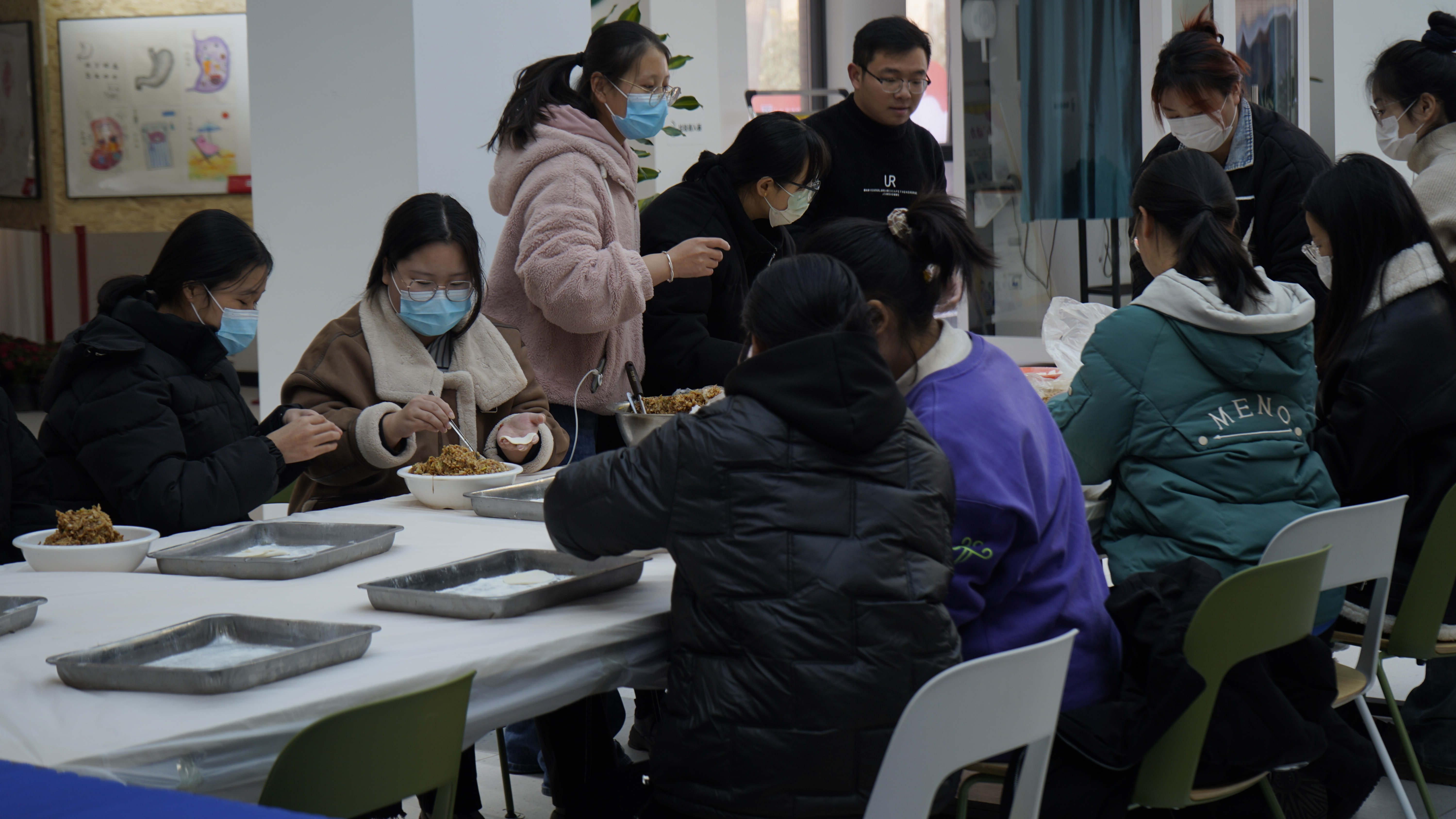 学业导师薛青瑞轻轻地拍了拍学生的肩膀,询问学生今天的饺子味道如何以及学习和生活情况,2023级口腔医学技术专业学生曲梦蝶表示,“我的家乡是河南周口,这是我来到大学以后,第一次在书院社区跟老师和同学们一起过冬至,让身处异乡的我们深切感受到了书院‘家’一般的温暖,学业导师和辅导员也在学习和生活上给予了我真切的关心和帮助,我对未来充满了期待!”接着,大家还将热气腾腾的饺子送到了宿舍,送到了学生身边,浓浓的情谊随着饺子的阵阵香味弥漫在整个书院中。