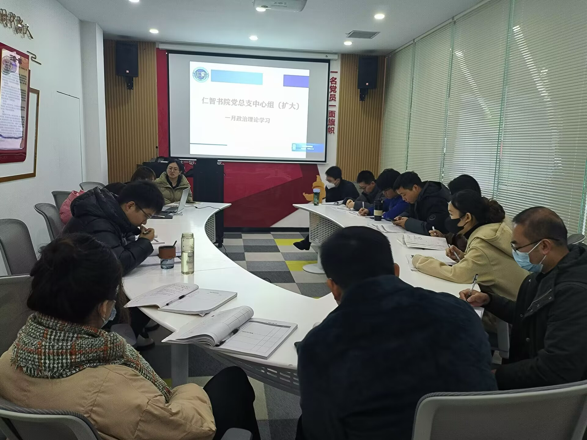 2024年1月25日下午,仁智书院党总支开展理论学习中心组(扩大)一月份政治理论学习会议。会议由仁智书院党总支书记马苏娟主持,党总支理论学习中心组全体成员及教师党员参加。本次学习会议采用“集中学习+集体观影+学习分享”的方式进行。