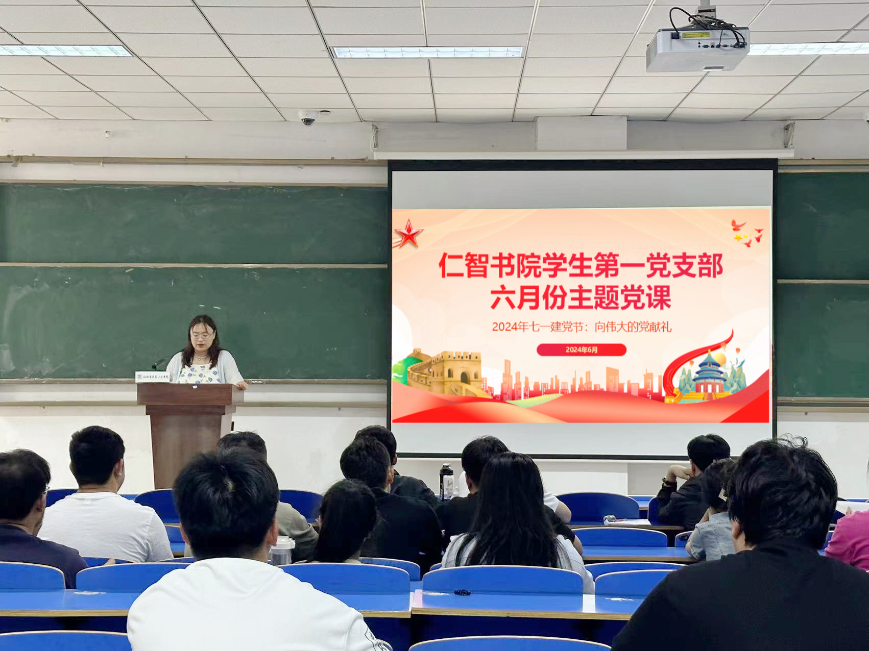 中国共产党的百年历史是一部带领人民站起来、富起来、强起来的奋斗史,也是一部不断铸就崇高精神的文明史。中国共产党成立103周年,我们以深切的敬意,向为中国进步奋斗的每一位英雄致敬。6月14日,仁智书院学生第一党支部书记李白璐以“向伟大的党敬礼”为主题为支部全体党员讲授了主题党课。