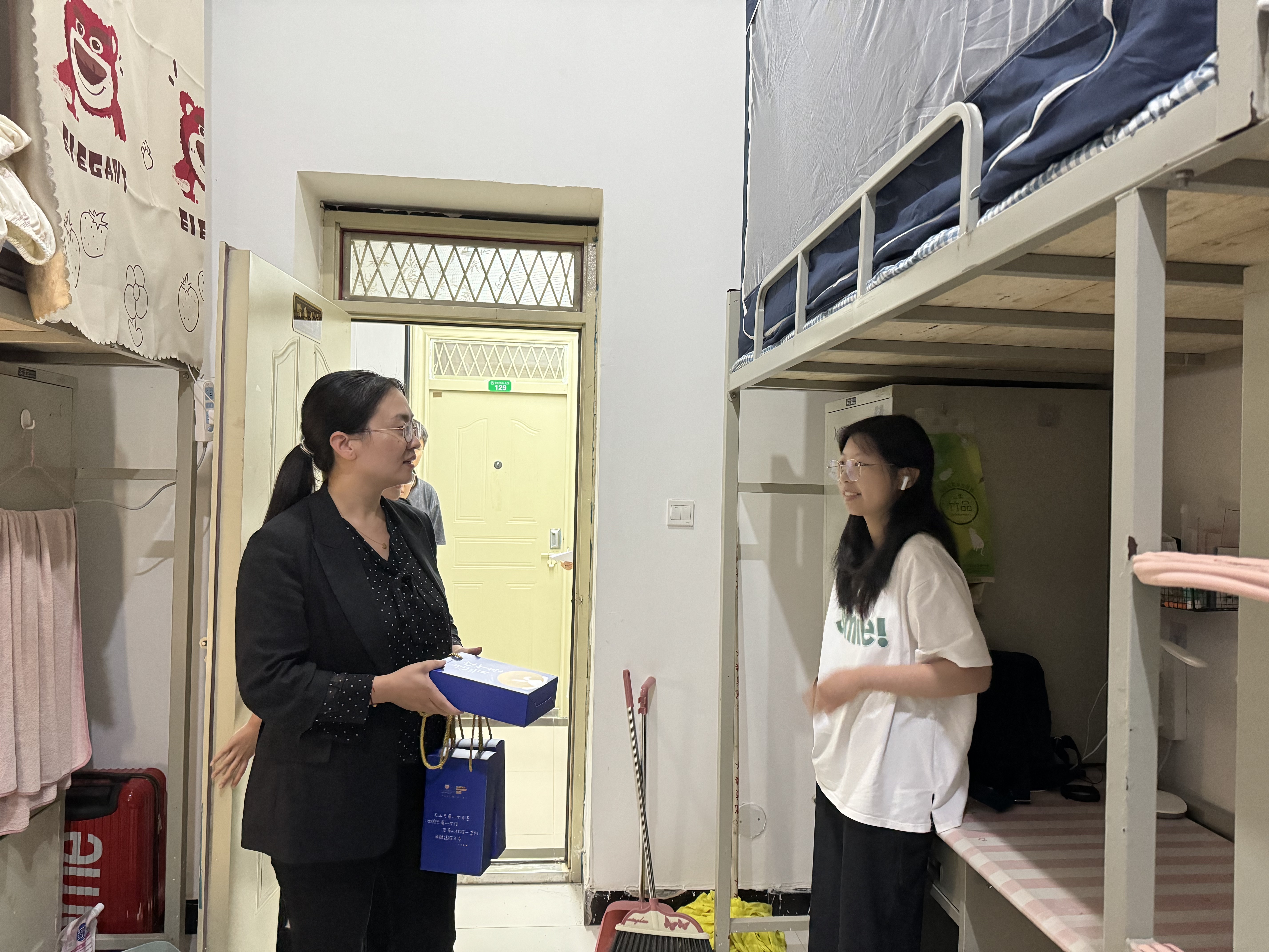 走访期间,马苏娟向众多仁智学子送上了精致的中秋月饼,并致以节日的祝福。她细致地询问了学生们在校的生活与学习情况,关注他们的未来学业规划,并针对学生提出的问题给予了耐心地回复、解答。窦倩也温馨提醒学生们要注意宿舍安全,警惕电信诈骗,在校期间要注意自己的人身财产安全。