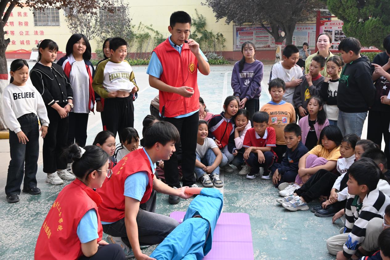 为深入学习宣传贯彻党的二十大精神,发挥医学院优势,增强学生社会服务意识,10 月 15 日,仁智书院联合医学影像学院走进杨厂中心小学开展“红十月”志愿服务系列活动,为孩子们带来了一场别开生面的医学知识科普盛宴和实用的心肺复苏教学演示。