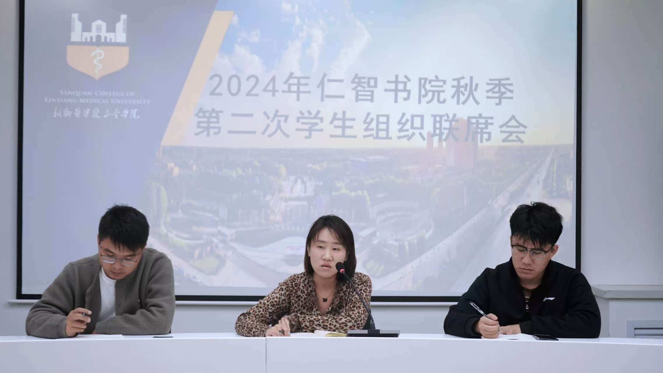 为进一步强化书院建设,深化学术交流,丰富校园文化内涵,2024年10月15日,仁智书院在学生活动中心召开了秋季第二次学生组织联席会议。此次会议邀请到了仁智书院院务主任兼团总支书记窦倩、学生组织指导老师王聪、康志良莅临指导,学生会、青年志愿者联合会、社团联合会、团副训练营以及艺术团等五大学生组织的主席团成员悉数出席。