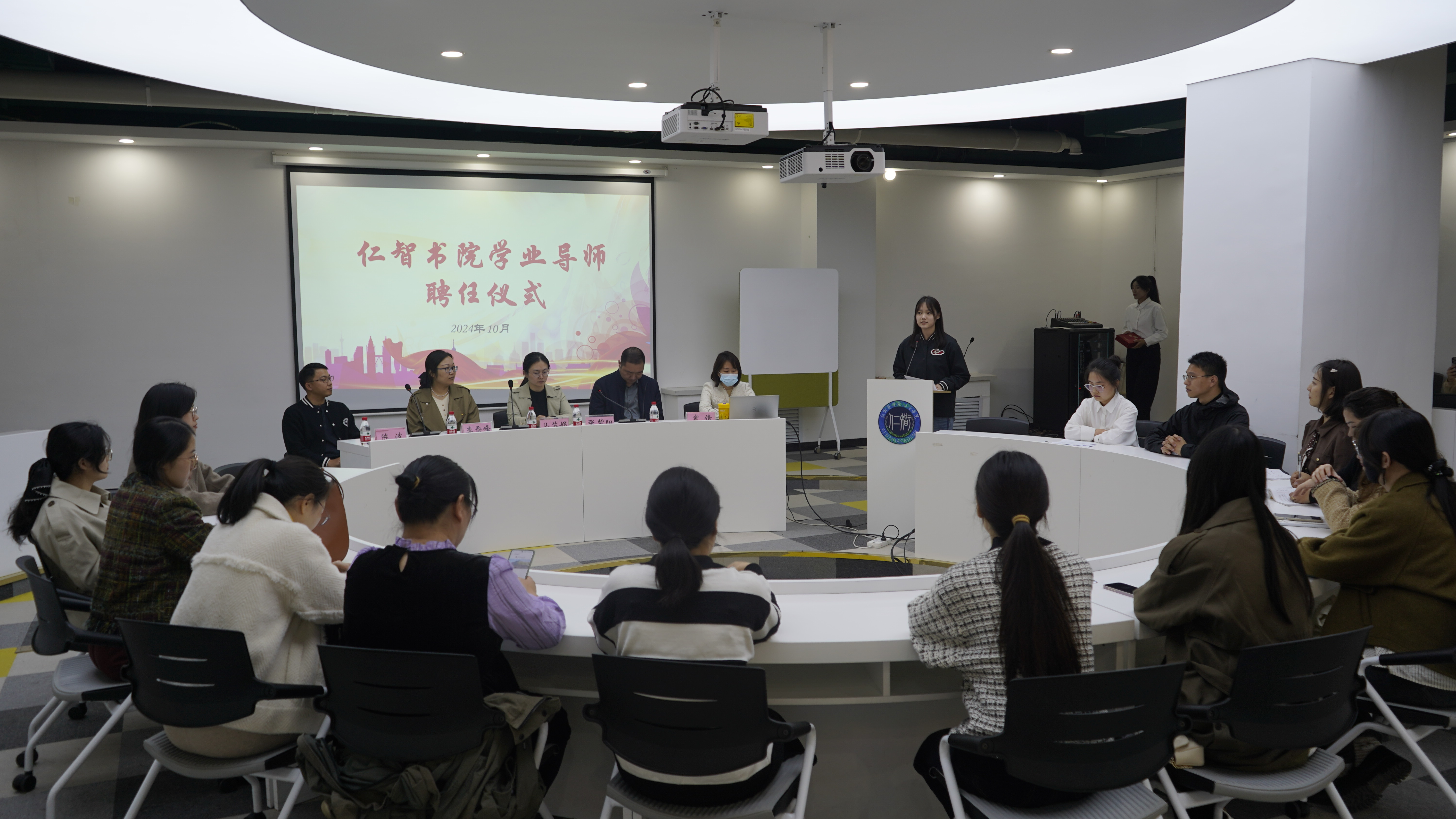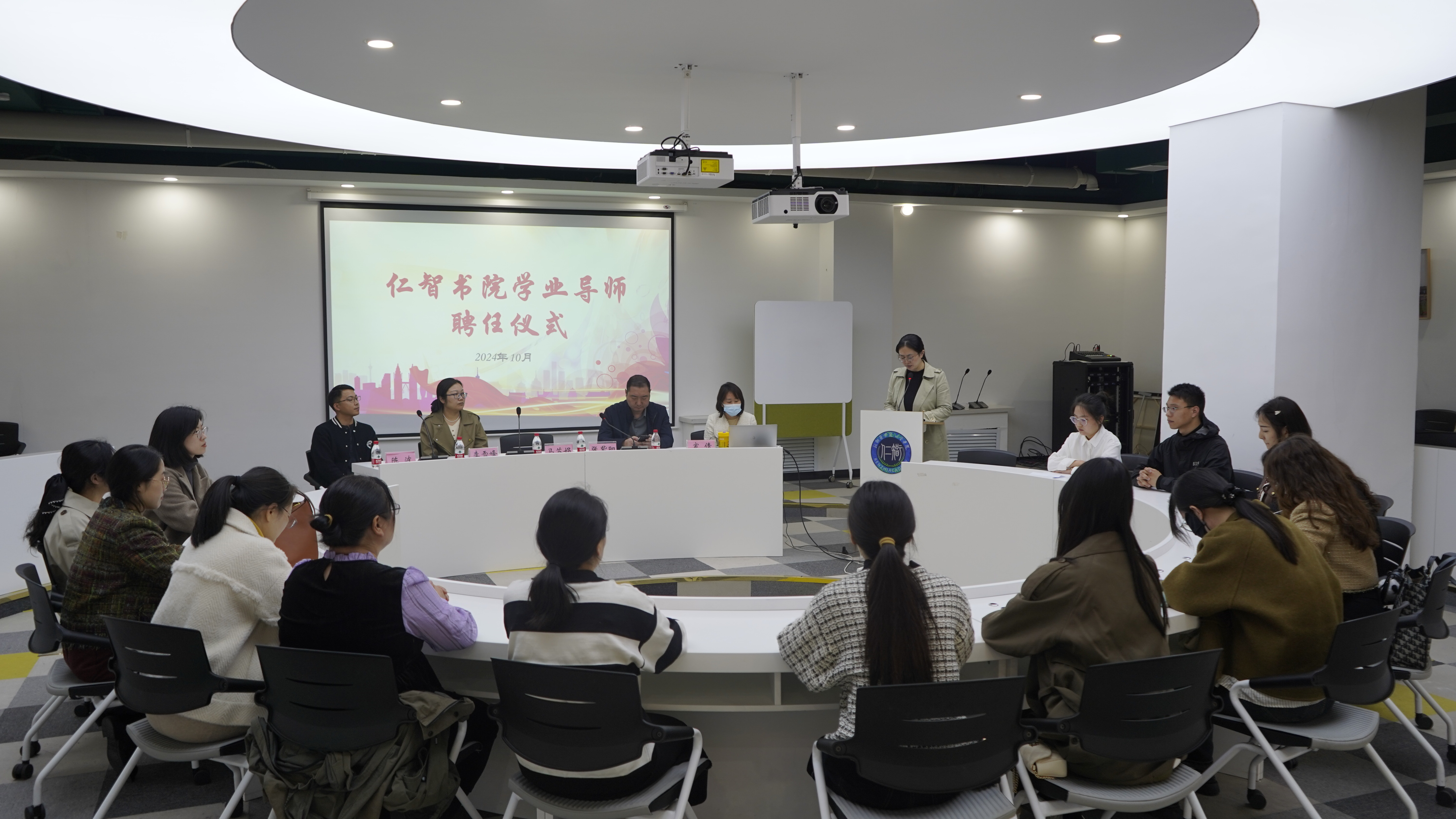 为全面落实立德树人根本任务,深入推进“一站式”学生社区建设,强化双院协同育人成效,进一步提升学生学业能力与学术素养,10月29日,仁智书院举办2024级学业导师聘任仪式。出席本次聘任仪式的有仁智书院党总支书记马苏娟、口腔技术学院副院长张紫阳、外国语学院专业英语教研室主任李雪峰,仁智书院院务主任窦倩、光明眼科学院优秀教师陈波以及相关学业导师和学生代表。