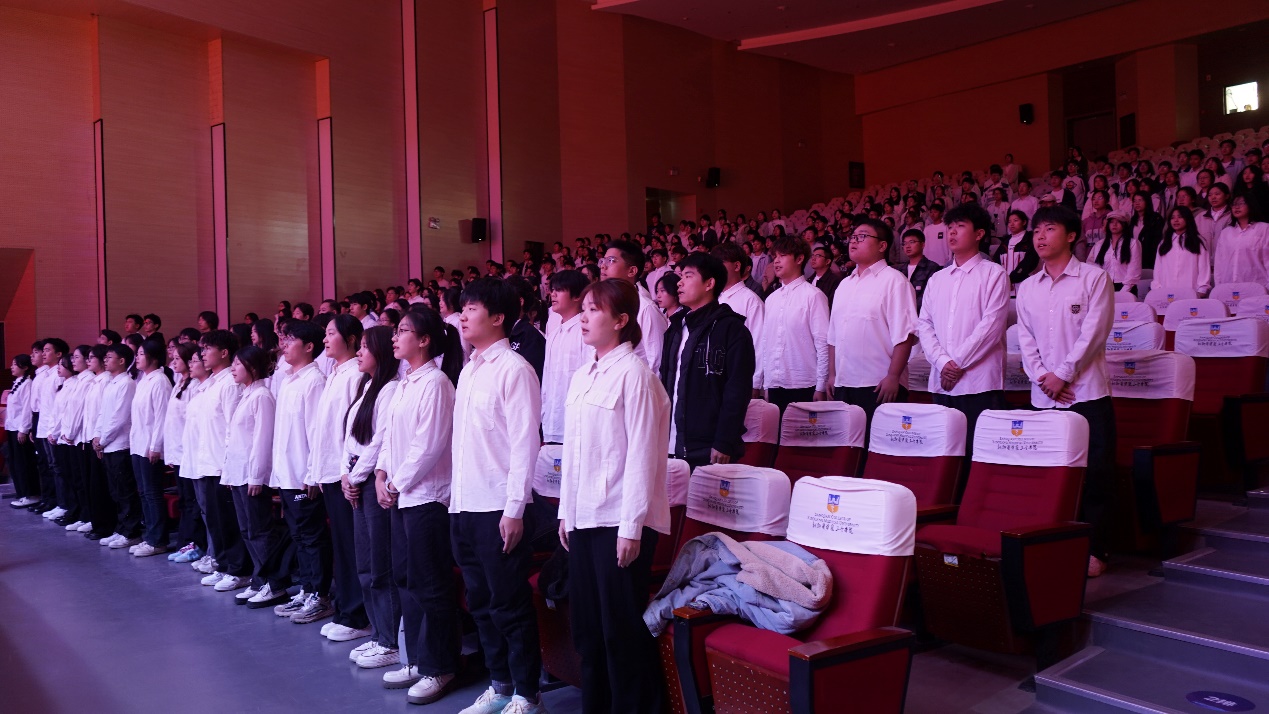 在聘任仪式开始之际,主持人以诚挚而饱满的热情,向莅临现场的各位领导、辅导员、学生组织成员以及志愿者们致以热烈的欢迎。紧接着,伴随着庄严的旋律,全体师生齐刷刷地站起身来,共同奏唱国歌。那激昂的歌声在会场中回荡,不仅点燃了在场每一个人的热情,更是为整个活动的正式开始奠定了庄重而神圣的基调。