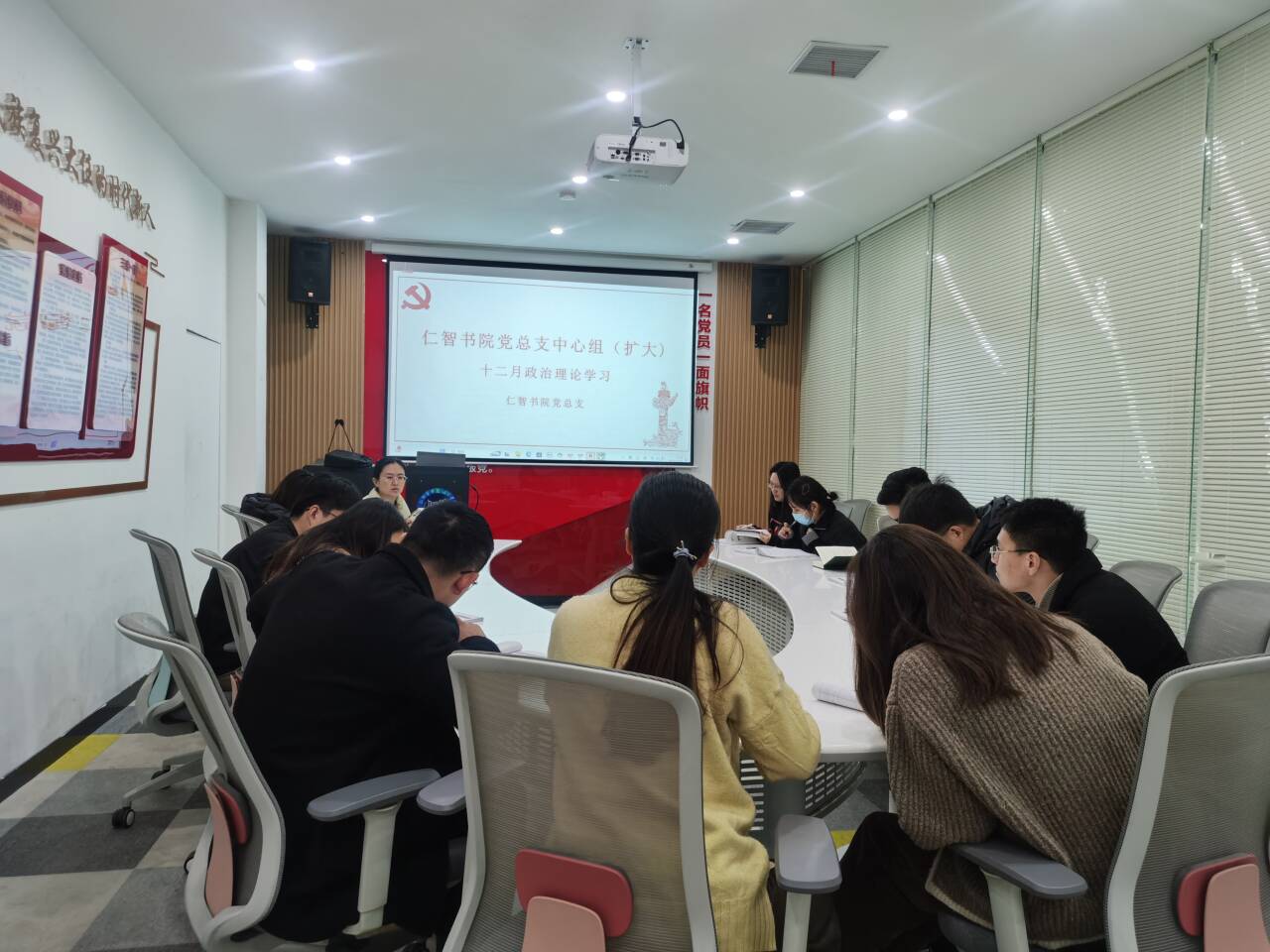 2024年12月23日上午,仁智书院党总支开展理论学习中心组(扩大)十二月份政治理论学习会议。会议由仁智书院党总支书记马苏娟主持,党总支理论学习中心组全体成员及教师党员参加。本次学习会议采用“书记领学+集中观影”的方式进行。