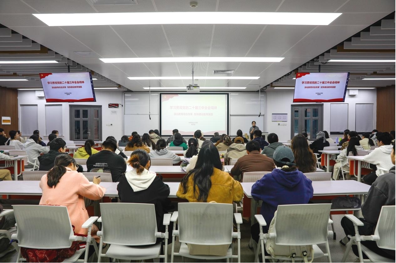 为深入学习贯彻党的二十届三中全会精神,推动会议精神在校园内落地生根,在师生中形成广泛共识,11月12日,仁智书院联合崇德书院于弘学楼F102举办了学习贯彻党的二十届三中全会精神讲座。