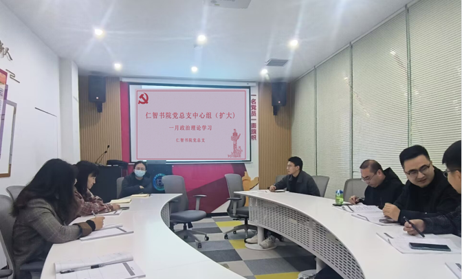 2025年1月10日上午,仁智书院党总支开展理论学习中心组(扩大)一月份政治理论学习会议。会议由仁智书院党总支书记马苏娟主持,党总支理论学习中心组全体成员及教师党员参加。本次学习会议采用“书记领学+集中研讨”的方式进行。