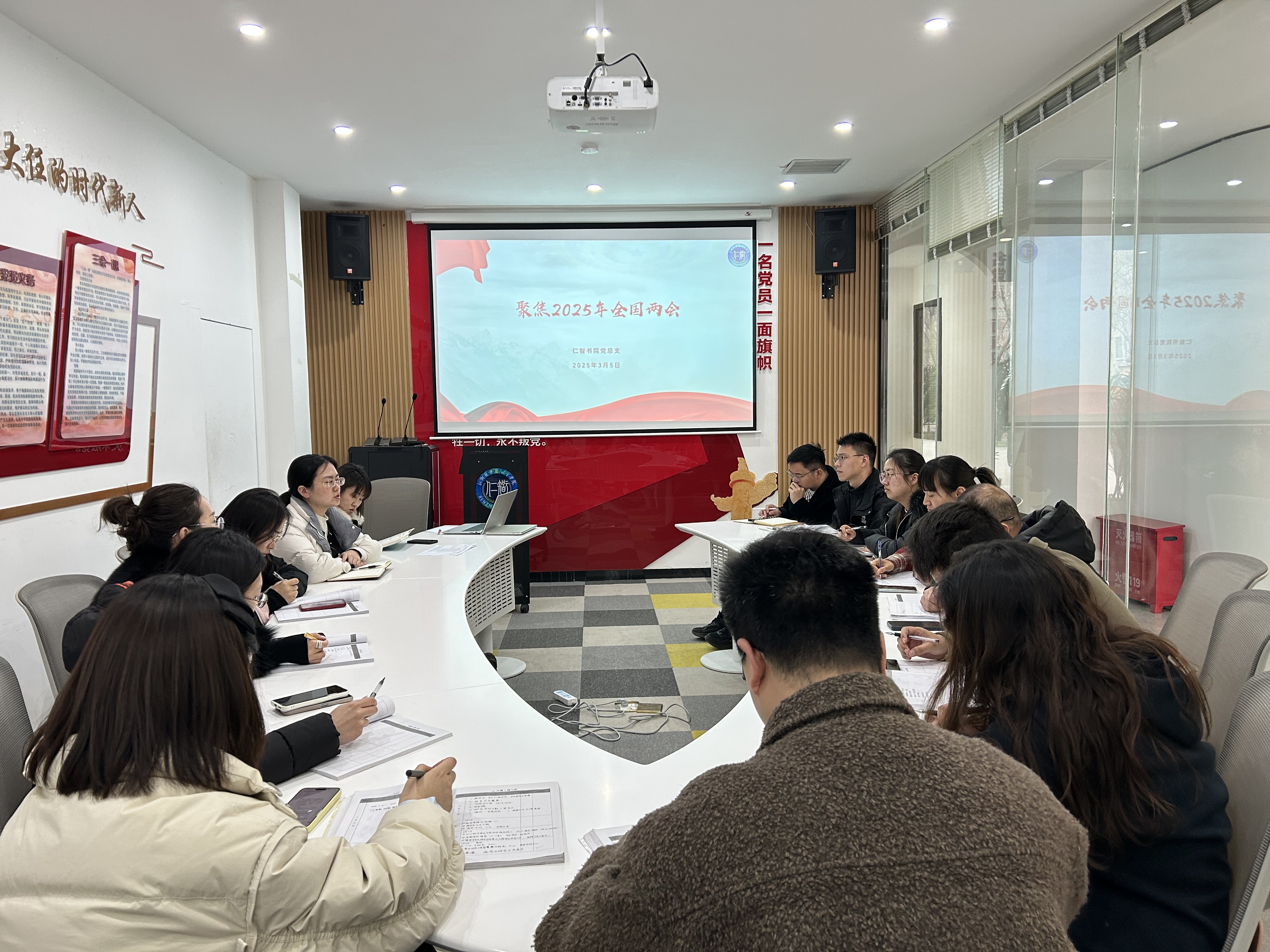 在全国两会胜利召开之际,仁智书院党总支于3月5日组织全体辅导员深入学习2025年全国两会精神,进一步明确新时代高校辅导员的工作方向和责任使命。会议由仁智书院党总支书记马苏娟主持,院务主任窦倩和全体辅导员共同参加。