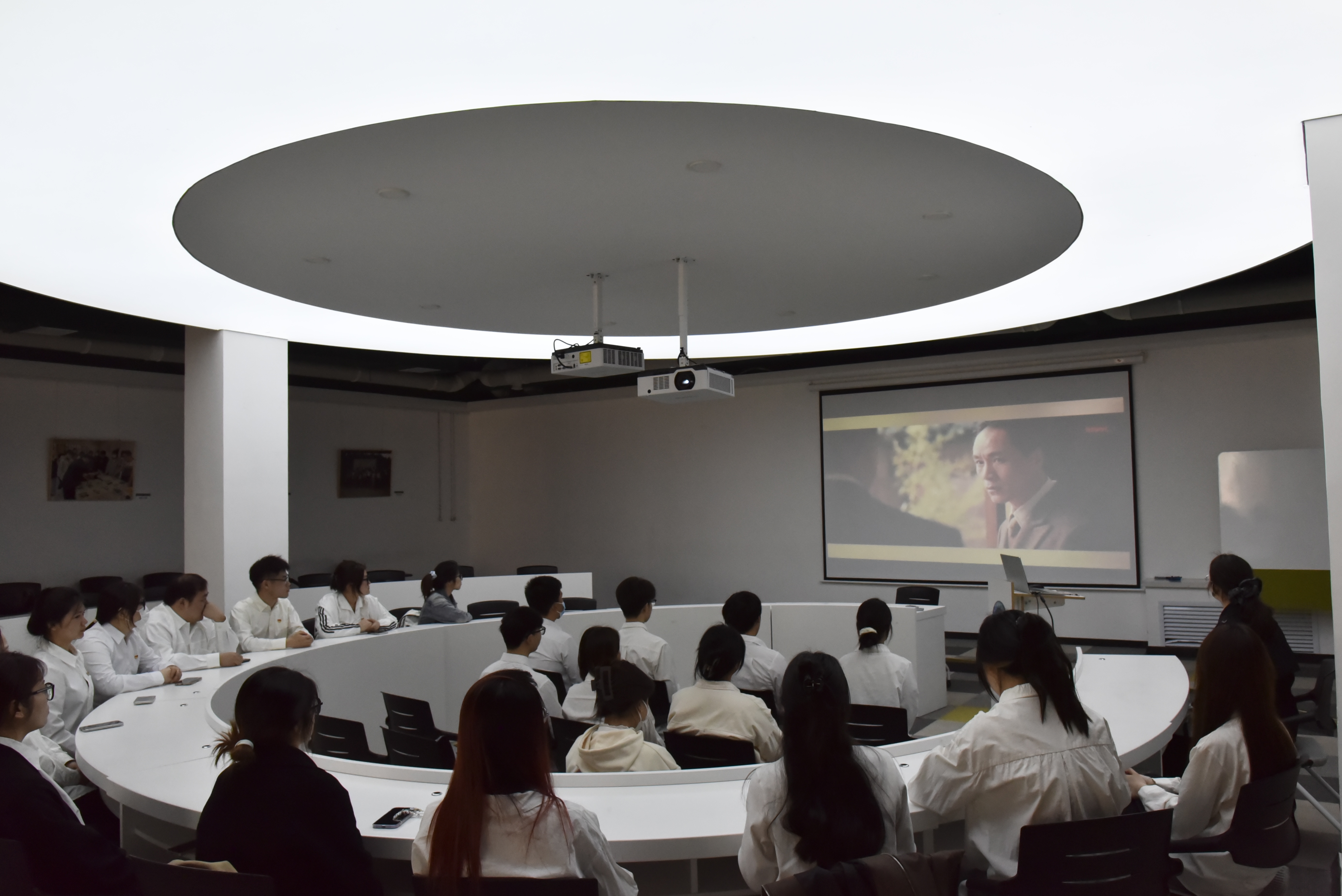 4月1日,信仰之光·红色影厅观影活动在仁智书院学生活动中心举行。师生共同观看《建党伟业》《长征》等经典影片,重温中国共产党筚路蓝缕的奋斗历程。影片放映结束后,参与者通过即兴发言、书写感悟卡片等形式分享体会。《我和我的祖国》中‘相遇’片段让我泪目,这份为国奉献的无名之爱,正是我们医学生未来需要践行的精神。党员代表刘浩龙在交流中感慨道。活动通过光影艺术与互动讨论,将革命精神深植师生心间。