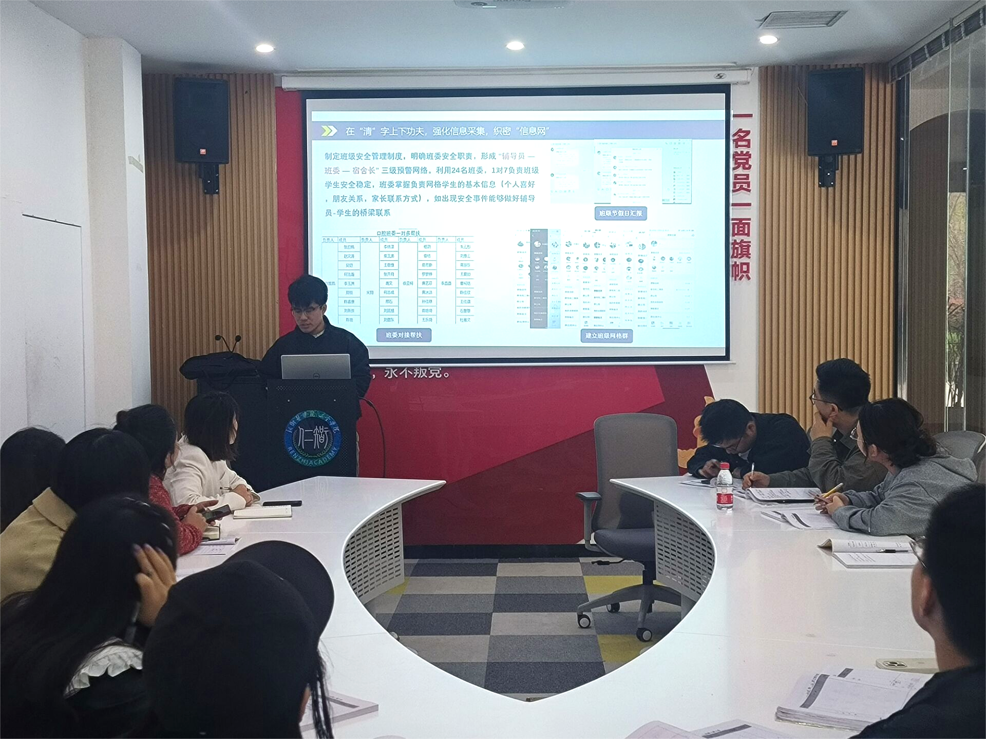 会议伊始,参会辅导员通过PPT详细介绍目前所负责的学生的学业、心理、生活、就业、身体疾病、寝室矛盾等情况,结合自身工作实际,围绕学生安全教育、安全隐患排查、突发事件处理等方面展开详细阐述。在交流环节中,大家热烈讨论并分享了在学生帮扶工作中积累的成功经验和有效方法。针对不同类型的学生,提出个性化的解决方案,如学业预警学生,实施早帮扶同督促的方法,从日常上课情况提早介入,辅导员、任课教师、学生骨干共同帮扶督促。