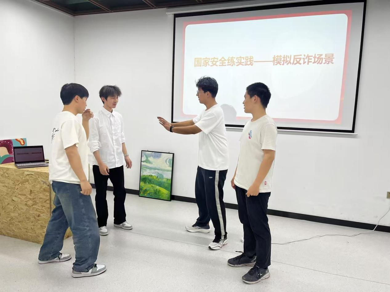 “见行动”活动同样精彩纷呈。模拟反诈情景剧吸引了众多学生参与。现场布置了逼真的诈骗场景,同学们分别扮演诈骗分子、受害者及警察等角色,生动地演绎了常见的网络诈骗手段。表演结束后,主持人进行了细致地讲解,讲授了实用的网络国家安全知识,有效地提升了学子们的安全防范意识和应对能力。