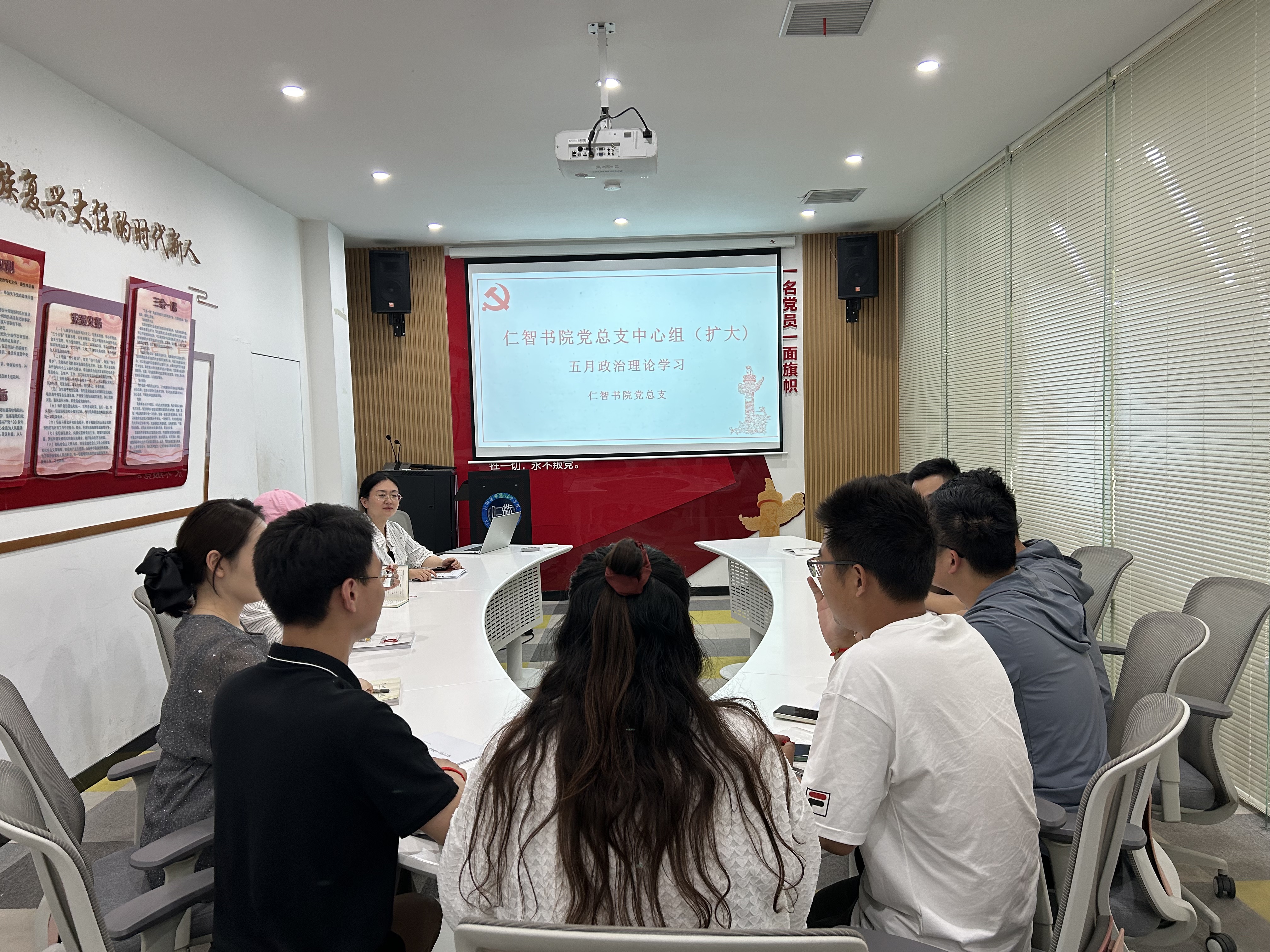 5月23日上午,仁智书院党总支开展理论学习中心组(扩大)五月份政治理论学习会议。会议由仁智书院党总支书记马苏娟主持,党总支理论学习中心组全体成员及教师党员参加。本次学习会议采用“集中学习+交流研讨”的方式进行。