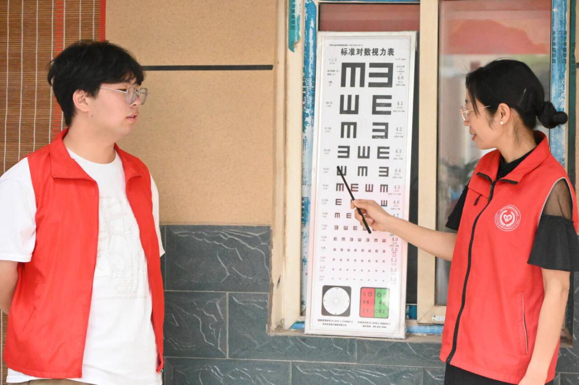 志愿服务团队配置专业验光仪器,为学生开展裸眼视力、屈光状态等精准筛查。针对筛查中发现视力问题的青少年,志愿者即时出具个性化检测报告,同步向教师及家长深入解析近视防控核心要素——科学管控电子产品使用时长、每日两小时户外光照时长保障、遵循“一拳一尺一寸”读写规范,助力学生筑牢护眼习惯根基。