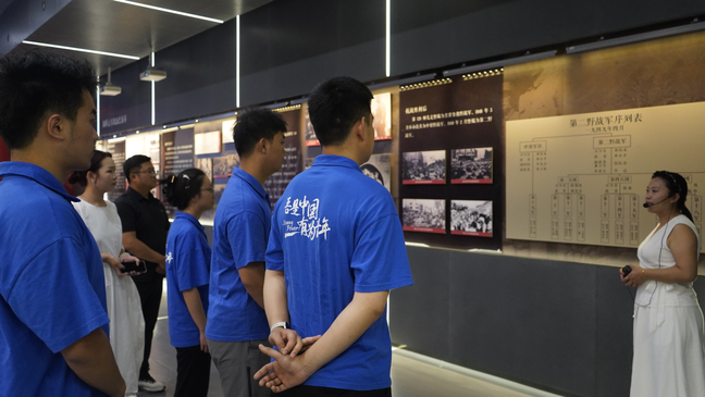 6月23日—25日,实践团在鹤壁市石林镇刘邓大军纪念馆及抗战纪念馆开展了深刻的沉浸式学习活动。在专业解说员的引领下,实践团重温了解放战争时期的战略决策过程,并以地方方言朗诵了《挺进大别山决议书》,深刻领悟了“严守纪律、顾全大局”的革命精神。纪念馆内陈列的各式枪支,是那个伟大时代的鲜明标志。面对展馆中循环播放的开国大典影像,全体成员庄严宣誓:“请党放心,强国有我!”