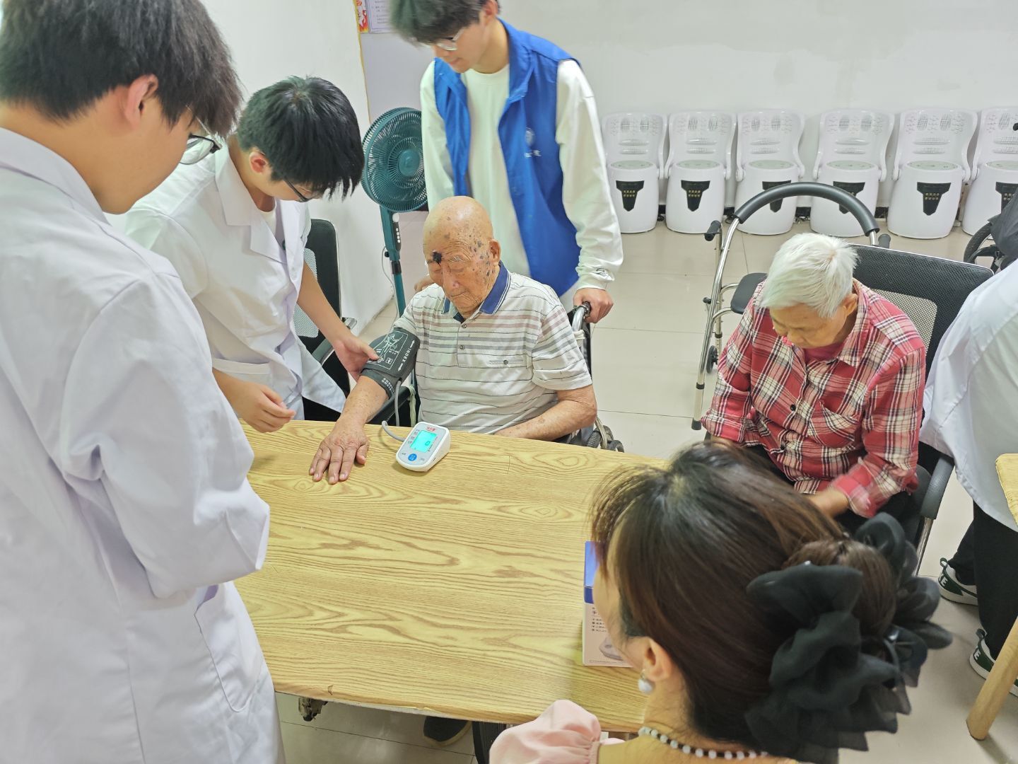 健康,是老人们最质朴的期盼。一踏入养老院,实践团的成员们就迅速行动起来,化身“健康小卫士”,为老人们提供血压、血糖测量等基础健康服务。他们操作仪器时手法娴熟,调试、测量、记录,每一个步骤都严谨得像在完成一项神圣的使命。测量结束后,成员们蹲在老人身边,用通俗易懂的语言细细讲解健康数据,还结合老人们的饮食和生活习惯,给出超实用的健康建议。“奶奶,您血压有点高,平时饮食要少放点盐,多吃点蔬菜水果哦!” 一句句贴心叮嘱,就像春日暖阳,不仅温暖了老人们的心,更让他们对自己的健康状况有了清晰地认识。