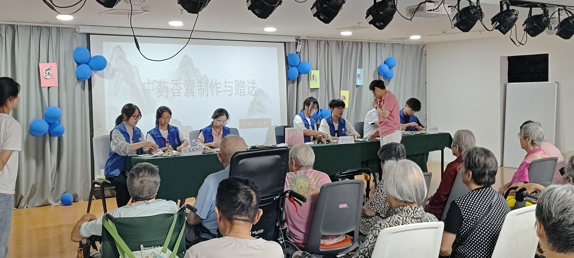 实践团精心筹备了中药香囊制作与知识科普。活动现场,艾叶、薄荷、广藿香等中药材香气四溢,成员们化身“小老师”,绘声绘色地讲解着这些药材的来源、功效和使用方法。老人们围坐在一起,听得津津有味,时不时还提出几个有趣的问题。随后,大家一起动手制作香囊,把满满的中医药智慧和美好祝福都缝进了小巧精致的香囊里。这些香囊不仅能驱蚊、安神,更是承载着千年中医药文化的独特纪念品。一位爷爷拿着香囊爱不释手,笑着说:“这活动太有意思了,既能学知识又能做手工,你们下次还来!”