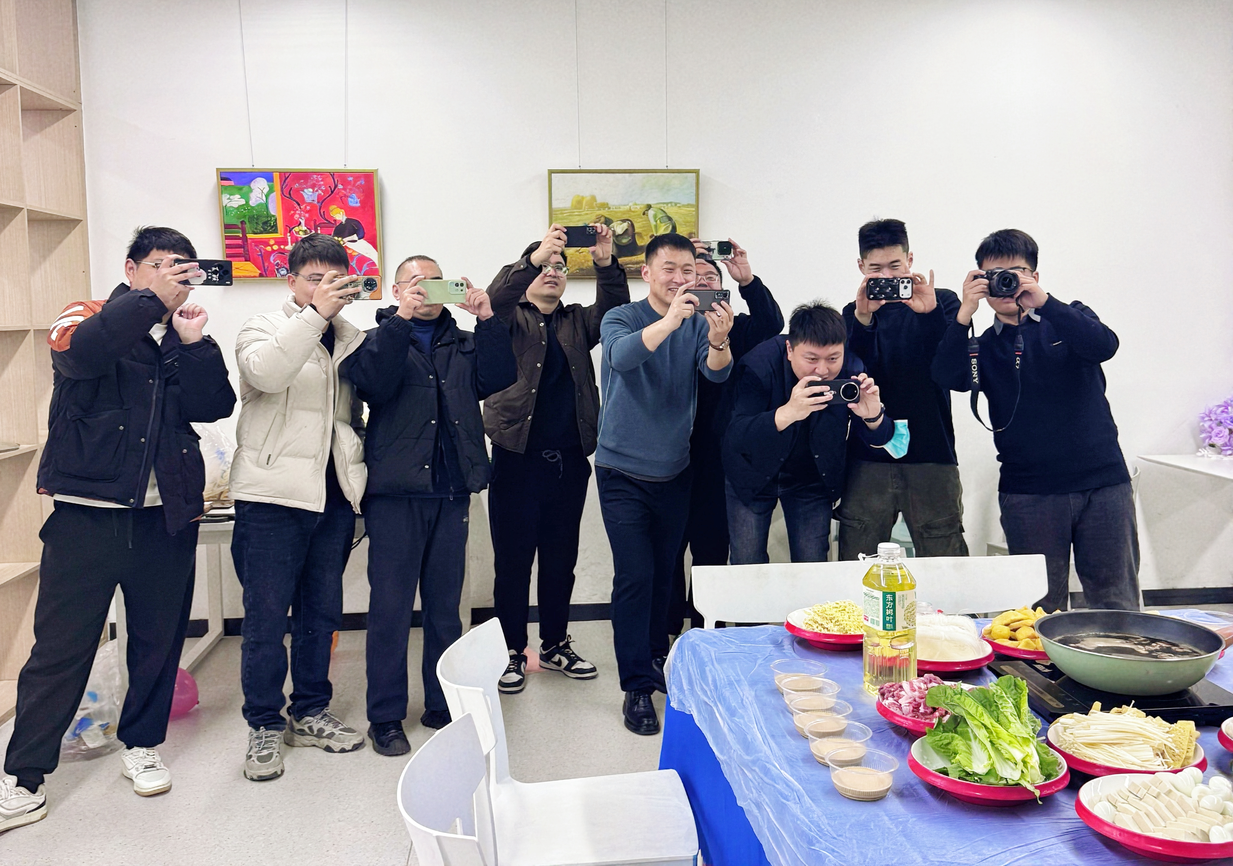 活动伊始,书院男教师化身“暖心主厨”与“全能管家”,从食材采买、精心摆盘到餐具分发,全程细致筹备、贴心服务。热气腾腾的火锅宴温馨开席,香甜精致的节日蛋糕点缀其间,烟火升腾里藏着最真挚的敬意,暖意融融中尽显书院大家庭的温情。